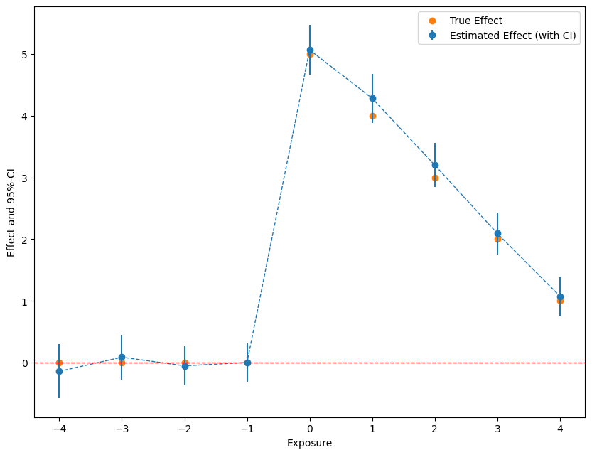 ecolor='#1F77B4', label='Estimated Effect (with CI)')